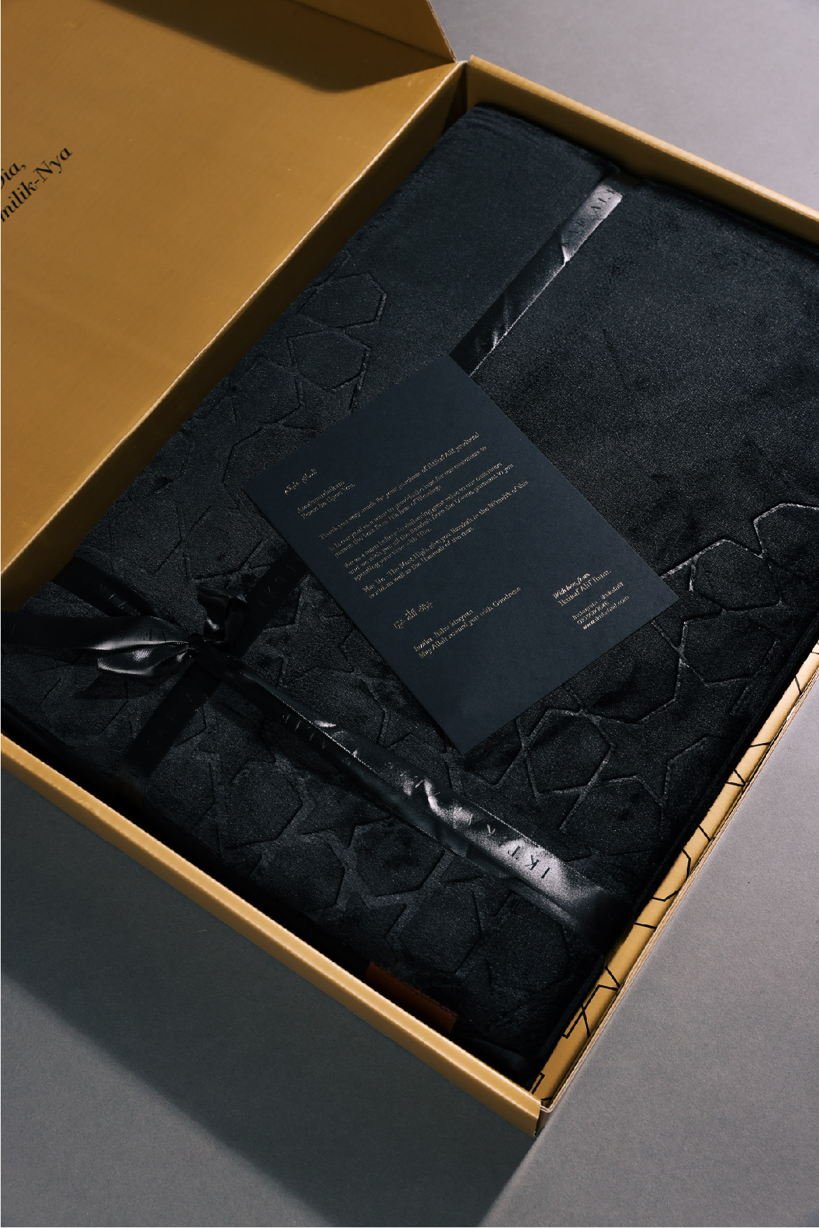 Packed in a golden box. Perfect for protecting the Sejadah and beautiful for gifting.